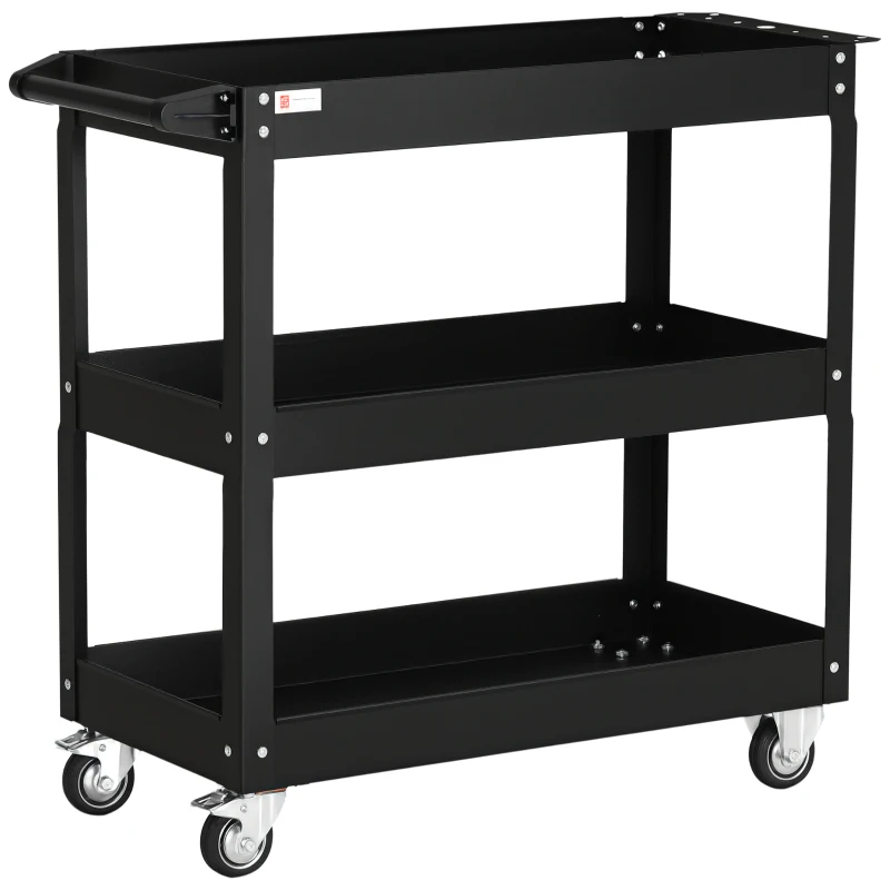 Wózek warsztatowy 3-półkowy, 150 kg, czarny, pusty