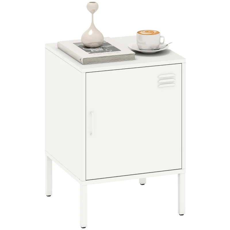 Stolik nocny HOMCOM, stolik pomocniczy z regulowaną półką, rama stalowa, nowoczesny stolik nocny do sypialni, salonu, biały, 40 x 40 x 56 cm