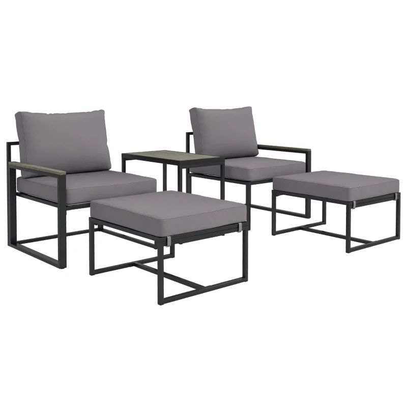 Zestaw mebli ogrodowych Outsunny dla 2 osób, stalowy, odporny na warunki pogodowe, z 2 fotelami, poduszkami i stolikiem pomocniczym, pufy, komplet do siedzenia na zewnątrz, meble tarasowe, idealne do ogrodu, tarasu i balkonu, szary