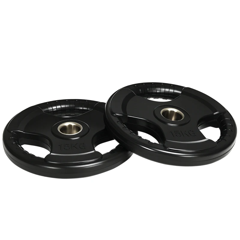 SPORTNOW Talerze ciężarków, zestaw 2 szt., Tri-Grip 2 x 15 KG z gumową powłoką, ochronne dla podłogi z otworami o średnicy 5 cm, trzy uchwyty, do podnoszenia ciężarów, treningu siłowego